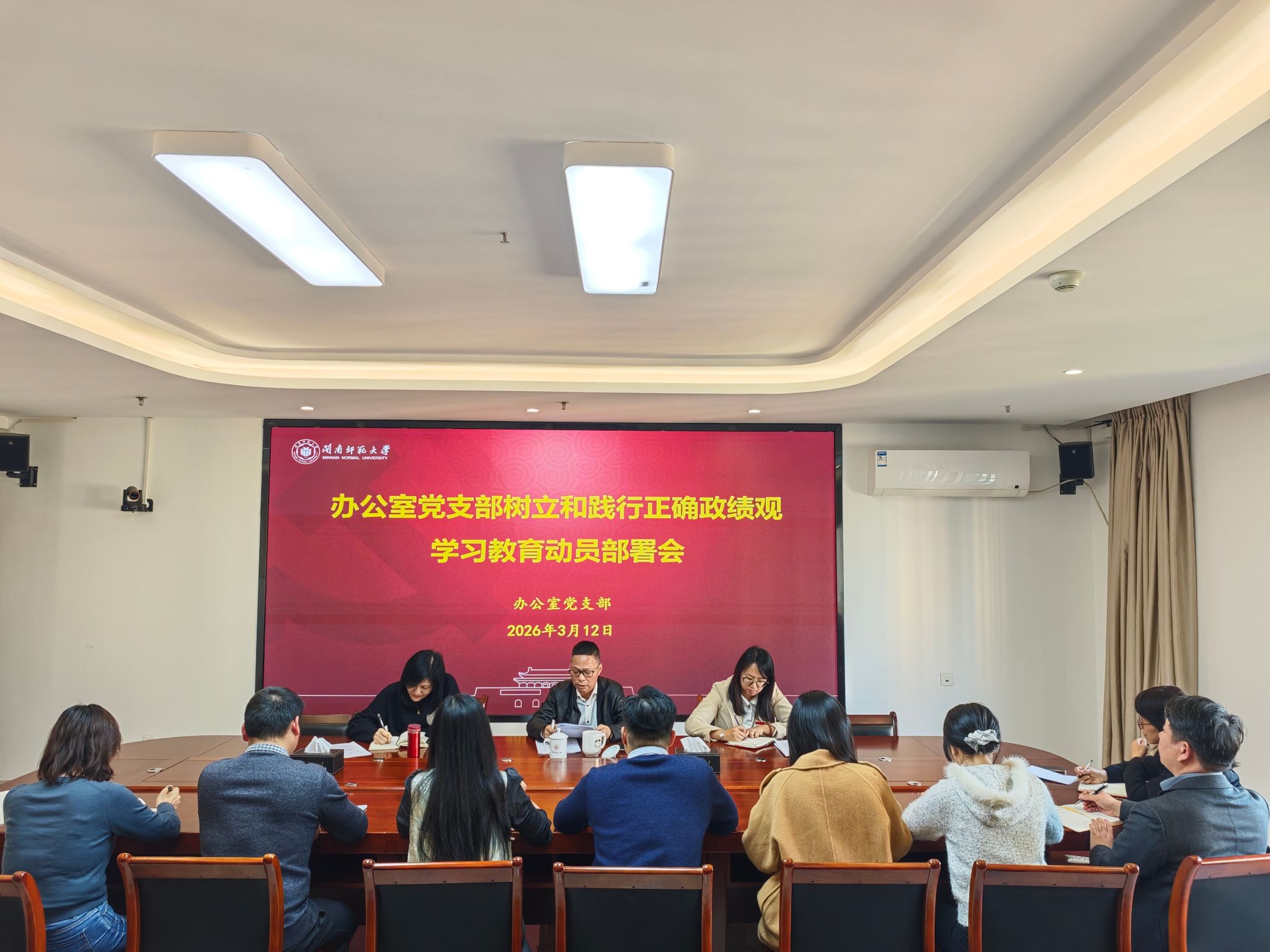 会上,罗炎成传达学习了上级有关文件精神及中央党的建设工作领导小组、教育部党组、省委常委会会议暨省委党的建设工作领导小组、学校党委党的建设工作领导小组相关会议精神,并部署办公室党支部开展树立和践行正确政绩观学习教育工作。